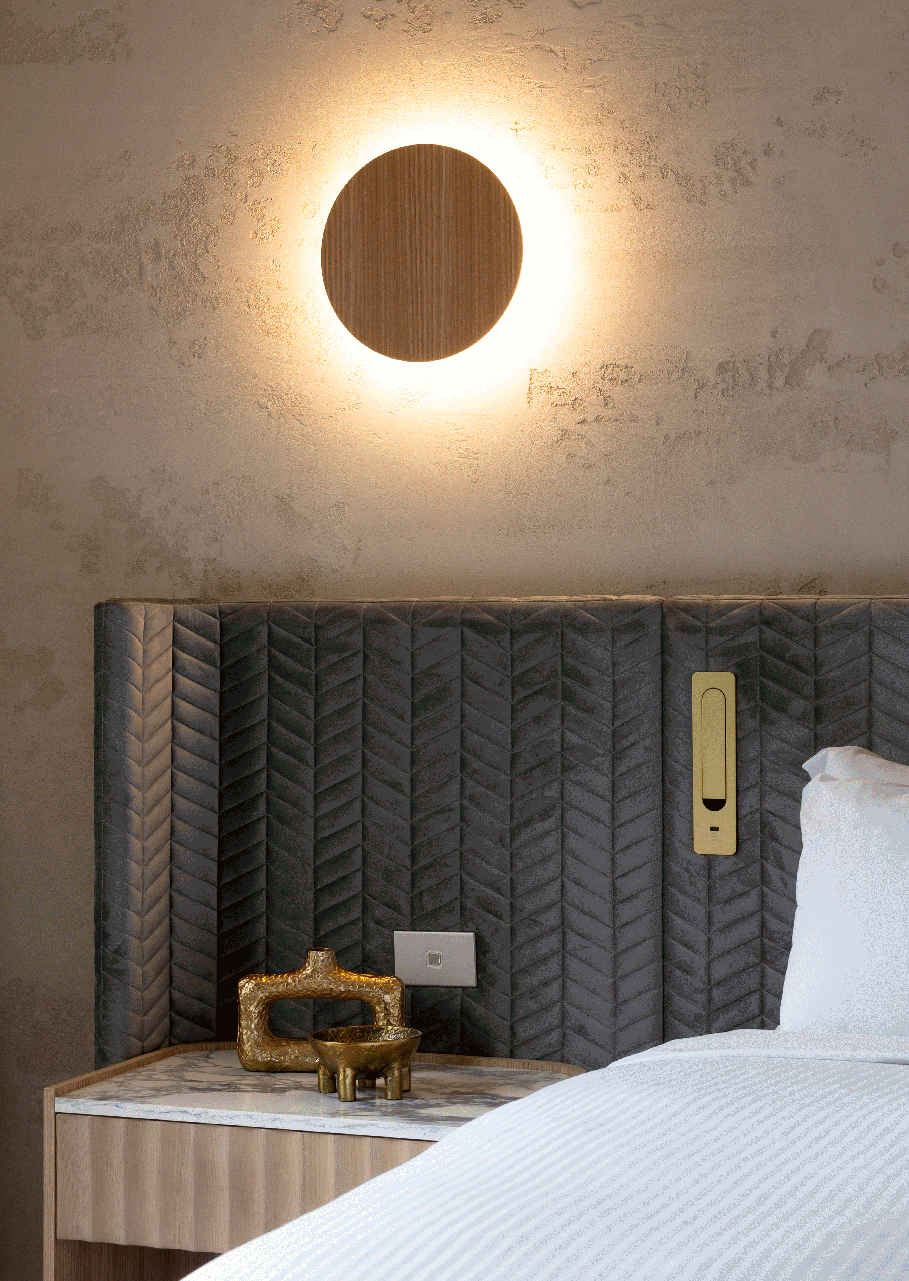 The design direction followed a contemporary urban chic aesthetic. Suites were elevated with lighter beige and tan tones in the living areas and deeper charcoal and grey finishes in the bathrooms. Each room was upgraded with venetian wall finishes, bespoke flooring, new furniture, lighting and décor, together with a full renewal of bathroom fixtures to meet modern guest expectations for comfort and style.